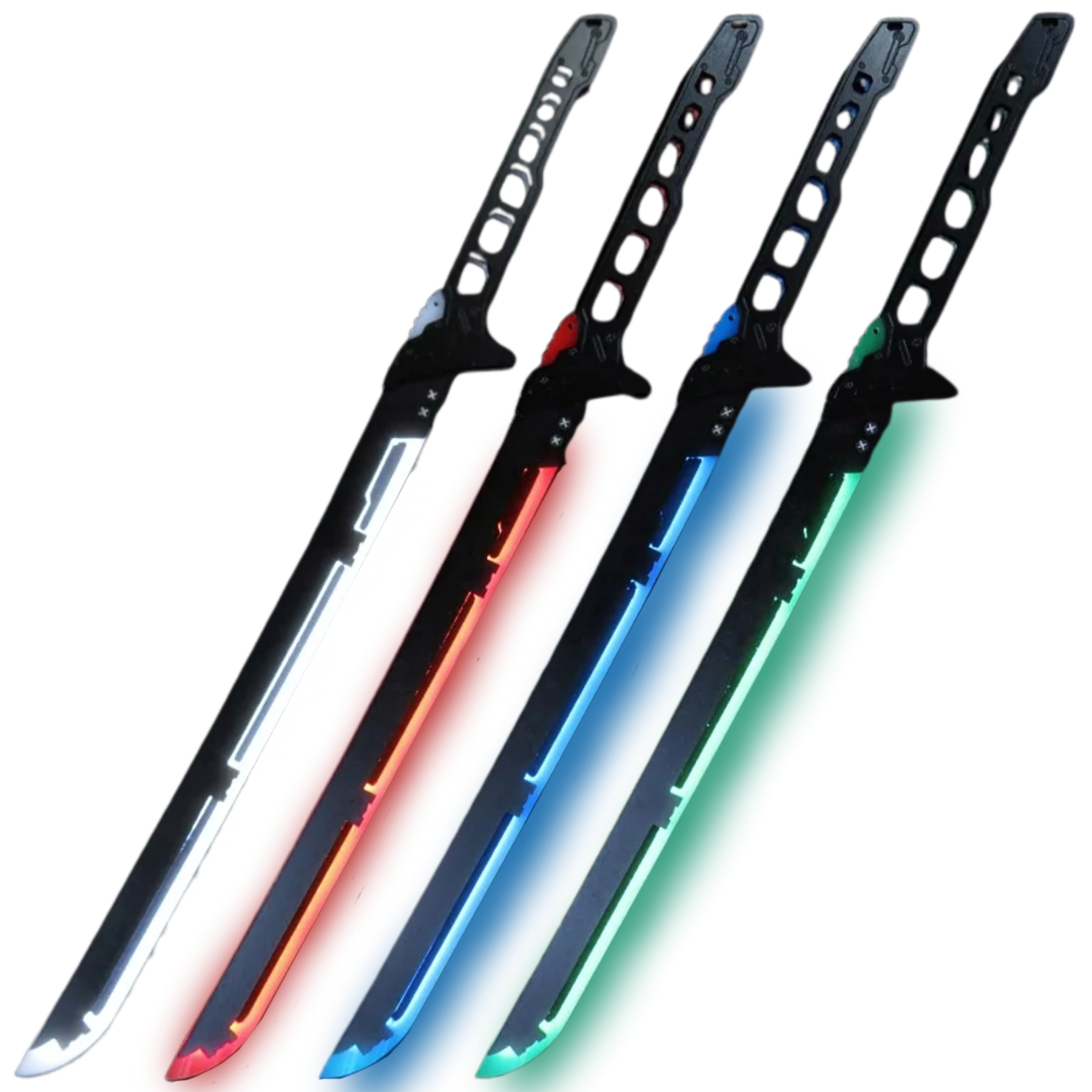 Forge the future with this Cyberpunk LED Katana, a full-size cosplay blade that fuses traditional Japanese sword design with futuristic neon light. Crafted from durable acrylic and alloy with authentic styling, its luminous glow turns every pose into a statement — whether you’re stepping on stage, hitting a convention, or building out your collection.